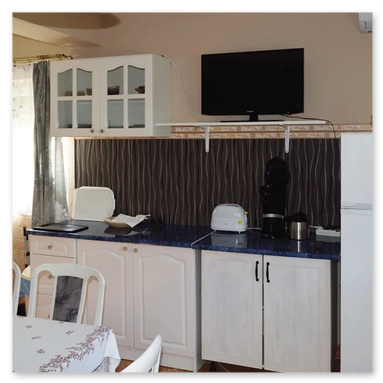 - Kétfős apartmanok: tágas franciaágy, komplett konyha