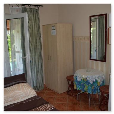 - Kétfős apartmanok: tágas franciaágy, komplett konyha